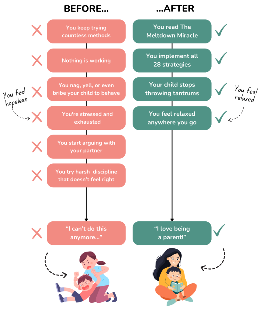 The Meltdown Miracle stands out because it combines cutting-edge child psychology with practical, real-world solutions. Unlike one-size-fits-all approaches, our 28 strategies offer a comprehensive toolkit that can be tailored to your child’s specific needs. We address the root causes of tantrums, not just the symptoms. Plus, our step-by-step guide ensures you’re never left guessing how to implement these powerful techniques.